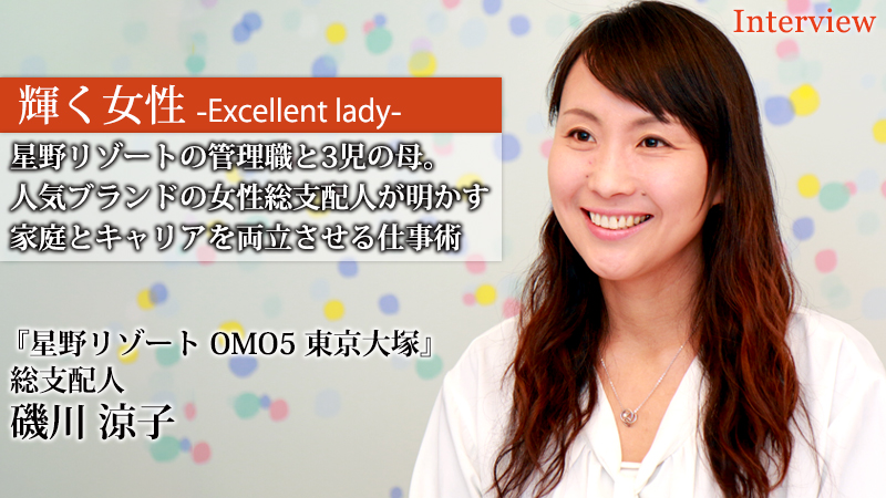 和にこだわった温泉旅館『界』や、ラグジュアリーホテル『星のや』などのブランドを持ち、国内外のリゾート地に数多くの宿泊施設を展開する星野リゾート。洗練されたデザインと様々なアクティビティプログラムが特徴的な同社が手掛ける新たなブランドが、都市観光ホテル『OMO(おも)』だ。2018年春に北海道『OMO7 旭川』と同時にオープンする『OMO5 東京大塚』の総支配人に就任した磯川涼子氏は、プライベートでは3人の子どもをもつワーキングマザーでもある。女性のキャリア形成にとって1つの大きなイベントである出産・育児を経てもなお第一線で活躍する磯川氏に、仕事と育児を両立し、キャリアを重ね続ける方法について話を伺った。
