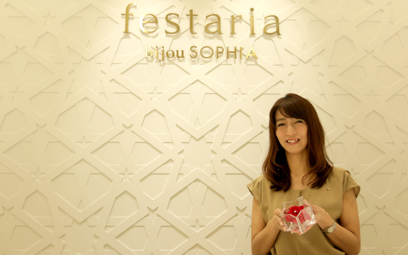 宝飾品店を選んだのは、親戚が宝石を商っていて、幼い時からジュエリーを身近に感じていたからです。会社を訪問すると、今と変わらずに情熱的に語る、当時専務だった貞松(現社長)がいました。フェスタリアホールディングスは沖縄に長崎県外初出店を果たしたばかりでしたが、熱意ある貞松の人柄や社風に魅力を感じて1994年に入社しました。