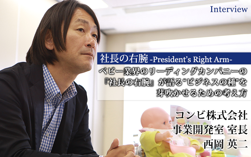 西岡 英二(にしおか・えいじ)/1968年4月13日生まれ。大阪府立豊島高等学校卒。1991年、コンビ株式会社に入社し、大阪営業所に配属。営業職として福岡・名古屋・広島・大阪の拠点を回り、2009年、リテールアップグループ(店頭販促)発足に伴いマネージャーとして就任。2011年に東京営業所副所長兼TB推進室マネージャーとなり、2017年には東京営業所長に就任。2018年1月、事業開発室 室長に就任する。座右の銘は「必死のパッチ」。趣味はゴルフ。