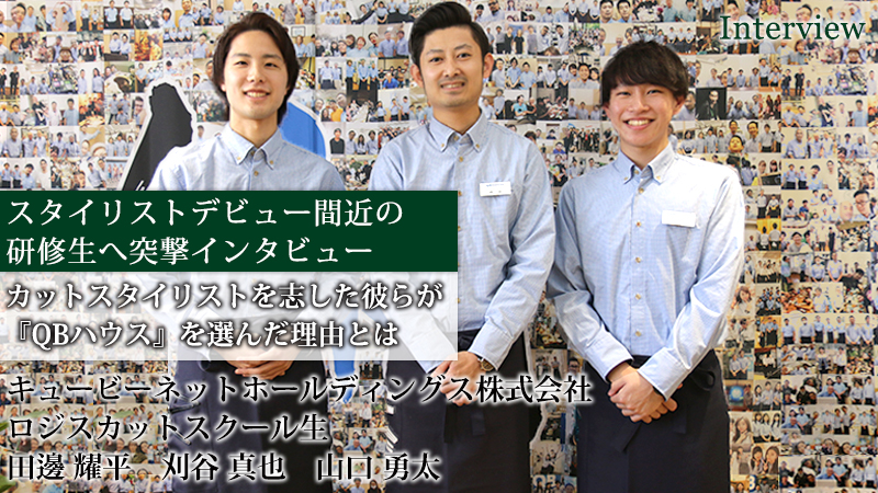 画期的な制度をもって「10分カット」サービスの品質を保つ同社で、今まさに研修生として6ヵ月目の卒業検定を控える3名に、『QBハウス』の魅力とスタイリストとなる意気込みを伺った。