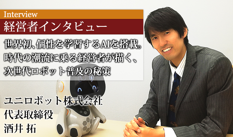 そんな時代に先駆け、個性を学習するという世界初のAIを搭載したパートナーロボットを開発したのが、代表取締役・酒井拓氏が率いるユニロボット株式会社だ。
