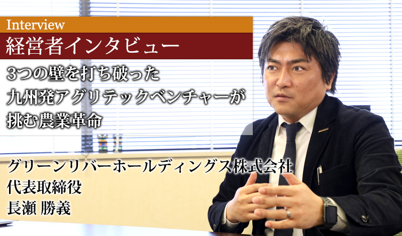 長瀬 勝義(ながせ・かつよし)/宮崎県出身。九州産業大学経営学部卒業。実家である建設会社に入社した後、独立し2003年にグリーンリバー株式会社を設立する。2014年グリーンリバーホールディングス株式会社を設立。2015年、農産物栽培を手掛ける子会社グリーンラボ株式会社を立ち上げる。