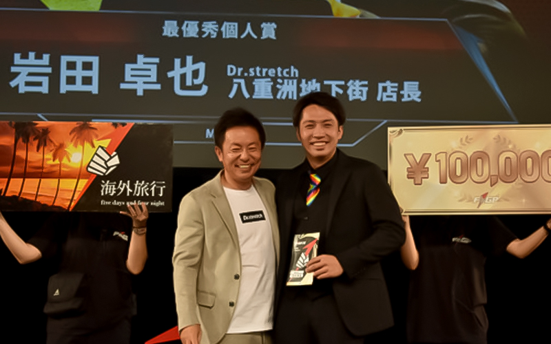 「エリアマネージャー総選挙」は、いわば自分の上司を自分で決める制度だ。『Dr.stretch』の店舗から立候補を募り、候補者は約半年間の選挙活動を経て『F1GP』にて渾身のプレゼンテーションを披露する。