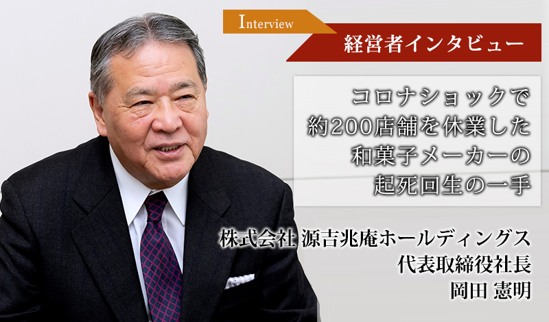 岡田 憲明(おかだ・けんめい)/1952年岡山県生まれ。70年に父・岡田寅太郎氏が創業した桃乃屋本舗(現源吉兆庵ホールディングス)に入社。77年に別会社である源吉兆庵設立と同時に専務に就任。2008年に副社長となり、15年に兄・拓士氏からバトンを受け、持ち株会社桃乃屋本舗と源吉兆庵など参加企業の社長に就任した。