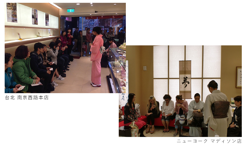 海外にも和菓子のファンの方はもちろんおられるのですが、まだまだ増やせるのではないかと考えています。そこで、和菓子を日本文化と合わせて広めていくために、海外の店舗では「お茶会」を催しています。