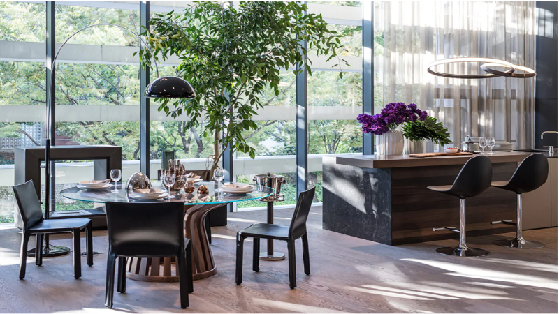 中でも南青山のショールームでは、キッチンやダイニング、リビングなど日々生活する空間に季節の花やテーブルウェアを設え、自宅で美しい暮らしやときめきを感じられるヒントを各所に散りばめています。