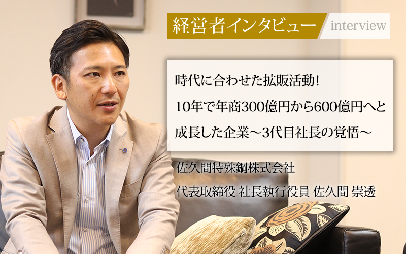 佐久間 崇透(さくま・たかゆき)/1983年4月27日生まれ。2006年に東京理科大理工学部卒業後、大同特殊鋼へ入社。2011年、父・貞介氏が経営する佐久間特殊鋼へ入社。本社営業グループ長、執行役員、取締役常務を経て2023年3月に社長執行役員就任。「世の中の役に立つ会社」であることを目指し、今年のスローガンとして「笑顔で変革にチャレンジ」を掲げる。