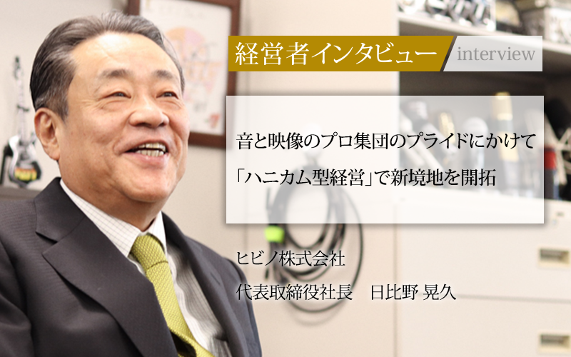 大物アーティストのコンサートや、東京五輪、宮内庁行事を映像と音響で支え、大企業からの信頼も厚いヒビノ株式会社。第一線のエンターテインメントを支える影の立役者である日比野社長だが、とくに苦労は感じていないという。