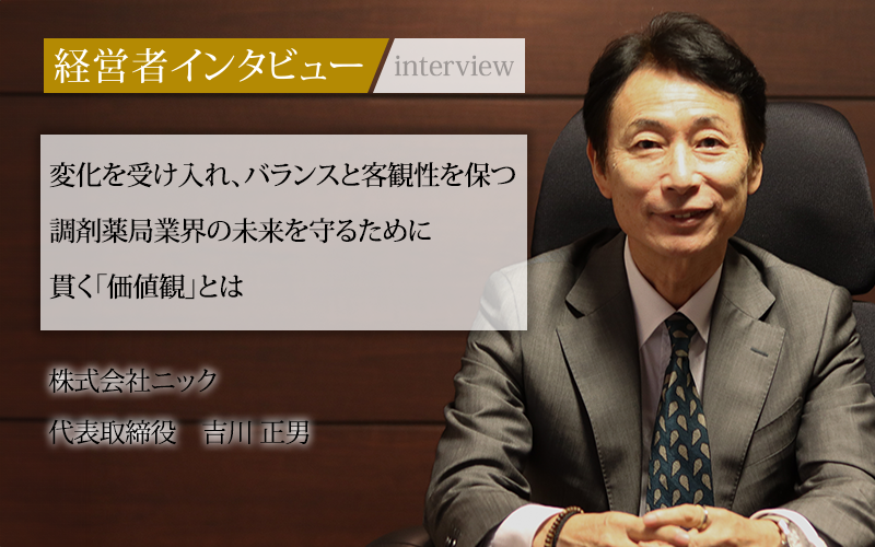 福岡県に本社を置く株式会社ニックは、地域の調剤薬局として頼りにされている企業だが、代表の吉川氏に話をうかがうと、企業経営よりはるかに大きい枠組みの視点を持っていることに驚かされた。