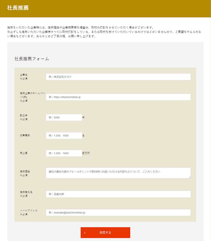 実は、社長名鑑には「話を聞いてみたい!」と思った社長を推薦できる