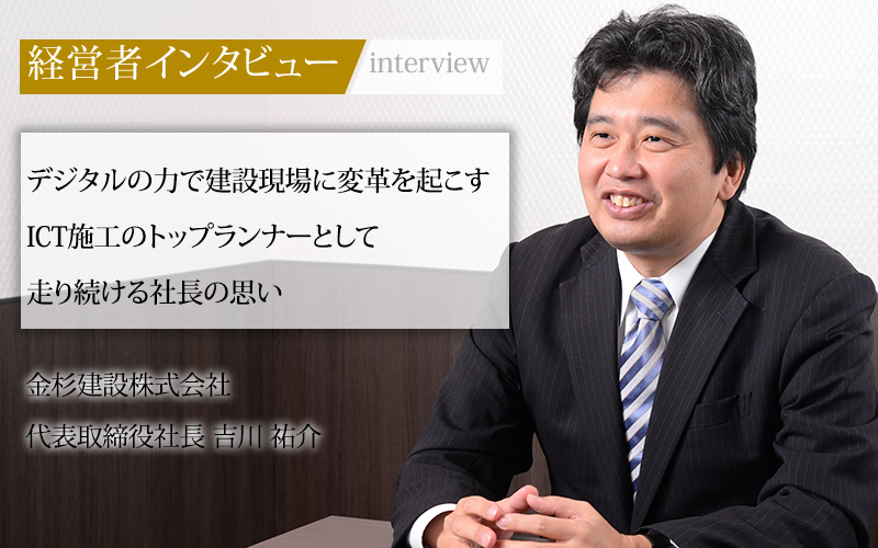 吉川 祐介(よしかわ・ゆうすけ)/1973年、埼玉県出身。日本大学 生産工学部 土木工学科卒業後、1995年株木建設株式会社に入社。2000年日本大学大学院 生産工学研究科 土木工学専攻博士前期課程を修了。2000年4月金杉建設株式会社入社、専務取締役を経て2020年10月代表取締役社長に就任。2017年国土交通省が建設現場の生産性向上に係る優れた取り組みを表彰する「i -Construction大賞」で優秀賞を受賞。2023年「インフラDX大賞」の工事・業務部門で国土交通省大臣賞を受賞。