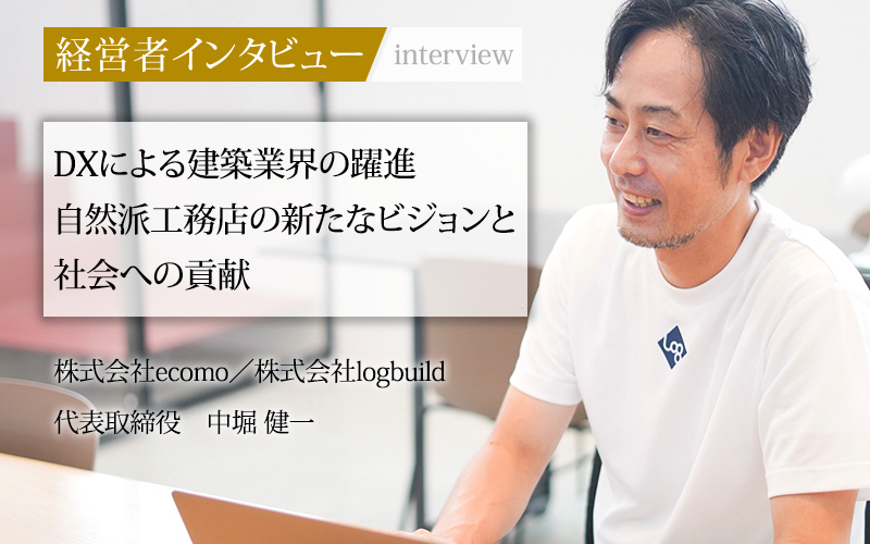 「地球にやさしい自然素材の家づくり」をコンセプトに、神奈川県を拠点に展開する株式会社ecomo(エコモ)。代表の中堀健一氏はエコロジーな家づくりとともに建設業のDXを目指し、株式会社logbuild(ログビルド)を設立してVR・AI・ロボットを活用した最先端の取り組みにチャレンジしている。