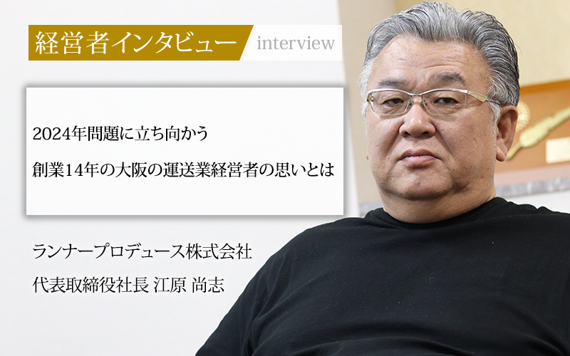 大阪府を本拠地とするランナープロデュース株式会社の江原尚志社長は、2024年問題やガソリン代の高騰など、運送業界が直面する厳しさのなか「日本の物流を支える企業としての責任がある」と突き進んでいる。人材育成や今後の運送業界の展望などについて伺った。