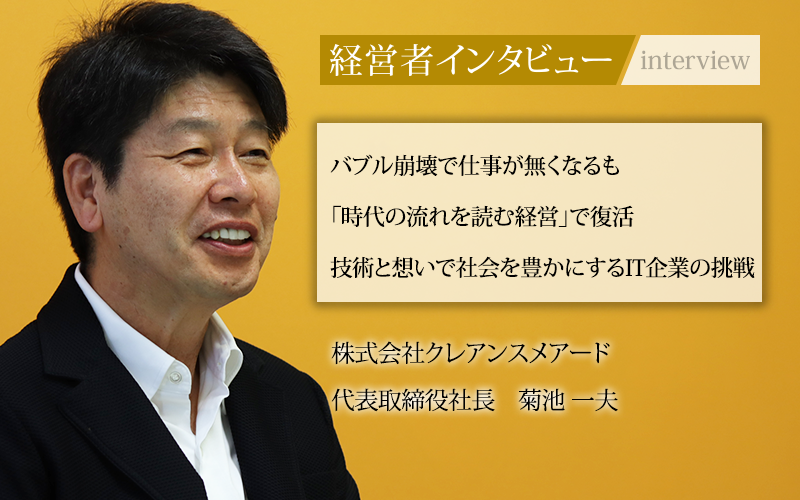 事業の根本には「良いシステムを開発したい」という思いがあると話す代表取締役社長の菊池一夫氏に、バブル崩壊を乗り越えた方法や同社の強みなどを聞いた。