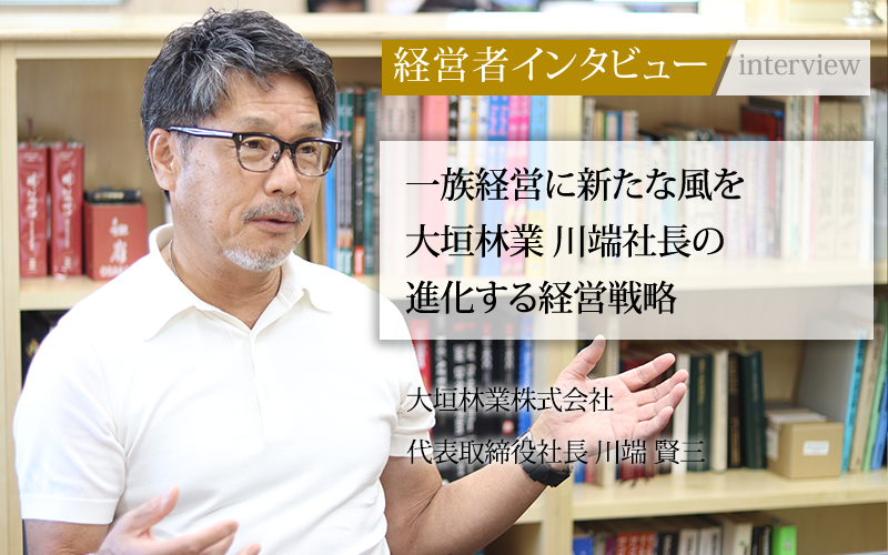 そのような業界の中で、さまざまな改革を試みているのが、近畿圏を中心に造作や新築、リフォームといった大工仕事全般を手がけている大垣林業株式会社だ。先代から社長を継いだばかりの川端賢三氏がなくてはならない企業になるため、どのような思いで改革を推し進めているのか話を伺った。