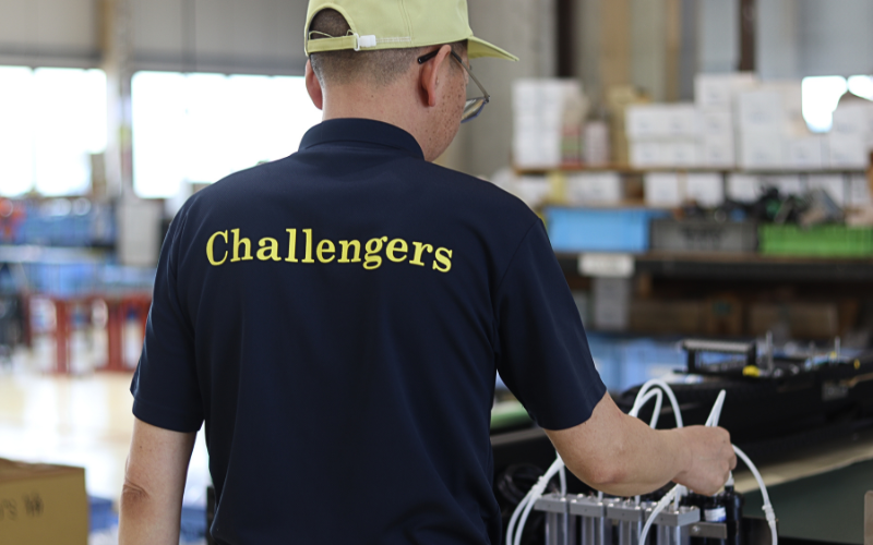 ただ、失敗を恐れるなといっても、やはり失敗はしたくないものです。恥ずかしいし、自分の行動を否定されたような気持ちになりますよね。でも、恥ずかしがらずにどんどんチャレンジしてほしいという思いを込めて、作業服に「チャレンジャー」とプリントしています。