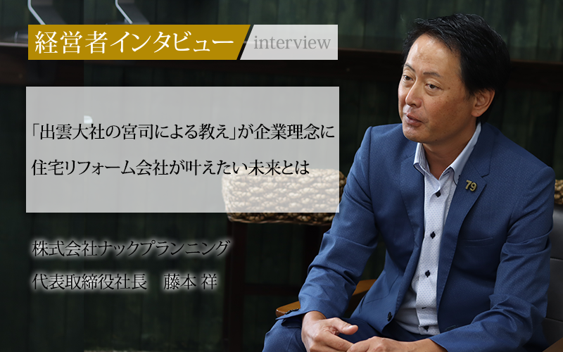藤本 祥(ふじもと・しょう)/1973年生まれ。島根県出雲市大社町出身。実家は江戸時代から330年つづく神棚大工で、藤本木工芸の13代目候補。関東学院大学建築学科卒。大学卒業後、ゼネコンに入社するもバブル崩壊で倒産。29歳で株式会社ナックプランニング設立。現・代表取締役。