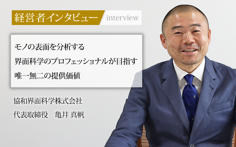 界面科学は、生活に身近な課題を解決する先端科学分野だ。界面科学に対する社長の熱い思いが、測定器と「うちにしかできない」と亀井社長が語るオンリーワンのサービスを支えている。宇宙での生活にまで広がる協和界面科学の将来展望に、心が躍るインタビューだった。