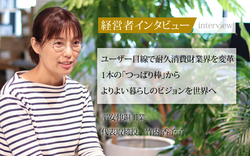 竹内香予子(たけうち・かよこ)/1982年兵庫県生まれ。大学卒業後、新聞社で記者として警察・行政の取材を担当。2009年に退職し翌年父親が経営する平安伸銅工業に入社、2015年に32歳で代表取締役に就任。つっぱり棒の企画開発で培ったノウハウを活かし、伝統と革新を併せ持つ「老舗ベンチャー」として、時代に合わせた商品開発を続けている。