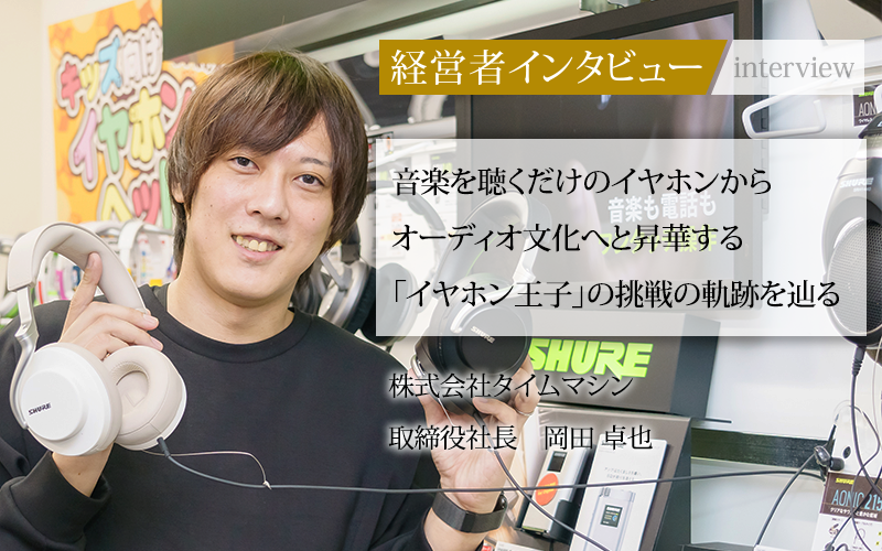 株式会社タイムマシンは、イヤホン・ヘッドホンの専門店を展開する会社として2007年に創業した。創業者である大井代表の後を継ぎ、2代目として2023年に社長就任したのが岡田卓也氏だ。