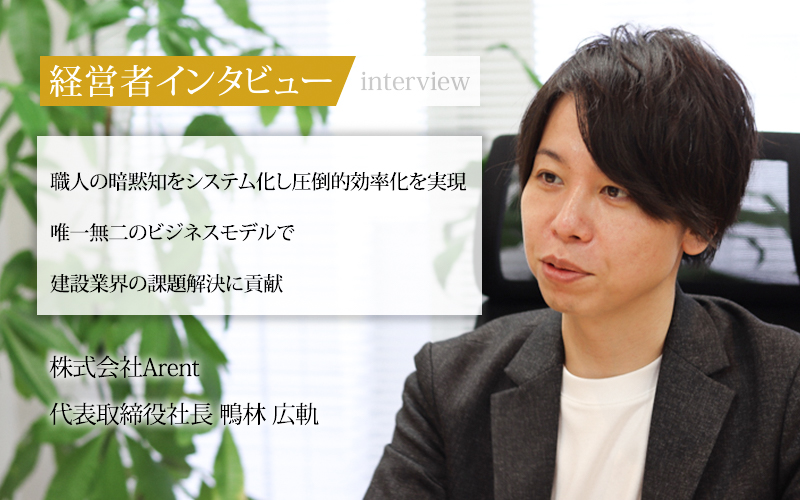 そんな中、株式会社Arentは職人の頭の中を解き明かし、暗黙知のシステム化に成功。独自のビジネスモデルや強みを活かして、建設業界の課題解決に奮闘している。