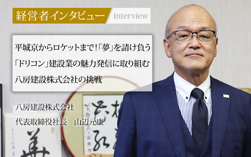 1976年に奈良県橿原市で創業し、地域に根付いた建築・土木工事から、平城宮跡などの文化財、さらにはロケット発射台まで、さまざまな建設実績を重ねてきた八房建設株式会社。同社も担い手不足に直面しつつも、その課題解決に挑んでいる。そこで、代表取締役社長の山辺元康氏に、現状や対応策、そして「夢」を請け負う「ドリコン」という社是に込めた思いや、建設業の魅力についてうかがった。