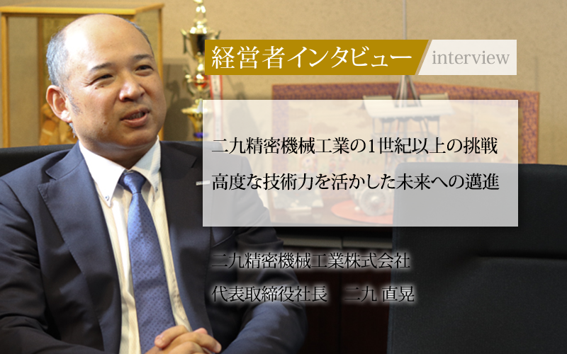 創業1917年(大正 6年)、小径βチタン合金パイプ、精密機械部品検査装置などの製造・販売、半導体の加工などを行っている二九精密機械工業。研磨加工が難しいとされる小径パイプのテーパー部の研磨も行うなど、技術力の高さに定評がある。