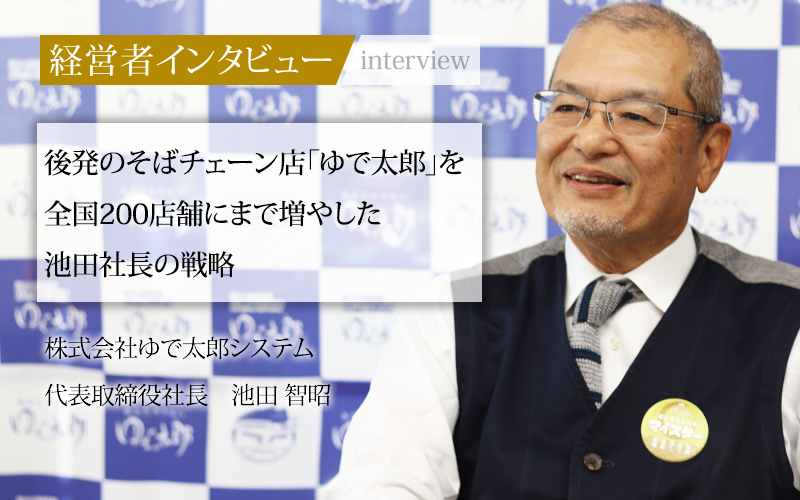 大手テイクアウト弁当チェーン店でのスーパーバイザーの経験を活かし、ゆで太郎のフランチャイズ化を成功に導いてきた池田智昭氏の思いを聞いた。