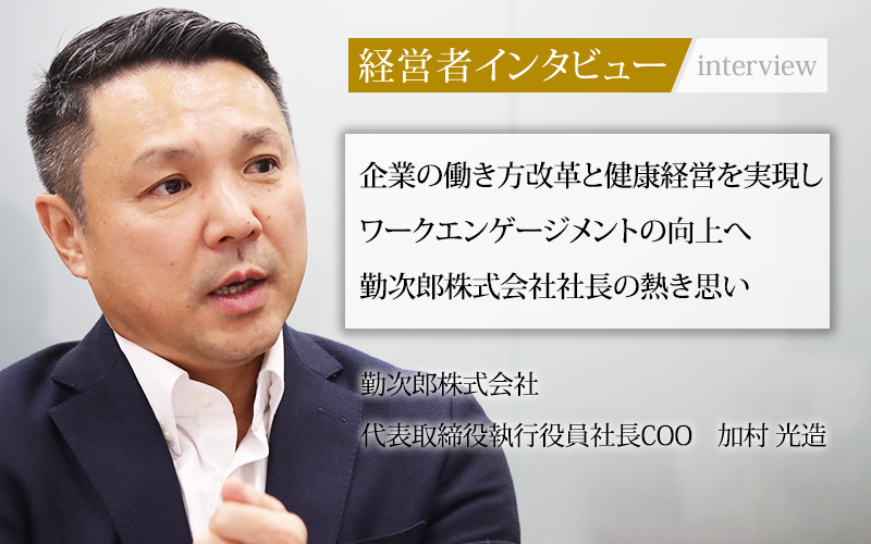 経営について教えようとした親の思いを振り切り、35歳で未経験だった営業畑に飛び込み、自らの力で営業スキルやマーケティングのノウハウを身に付けたという加村社長。寡黙な一面からは想像できないほど、仕事に対する熱い思いが感じられた。企業の働き方改革や健康経営をサポートする勤次郎株式会社は、現代の日本が抱える課題を解決するうえで大きな役割を果たすことだろう。
