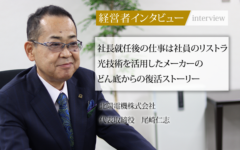 どん底にある会社を任される形で社長に就任した尾崎氏。取材中、「私は、社員に『北陽電機の社長になりたい』と思ってもらえるような会社にしたい」と今後の目標を語った。