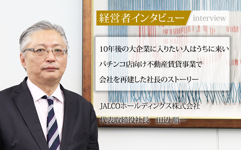 経営の危機に陥っていた株式会社ジャルコを、電子部品製造の会社からパチンコ店向け不動産賃貸の会社として再建させた代表取締役社長の田辺順一氏。