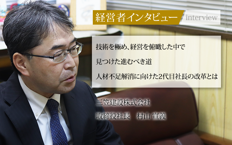 同社は各制度の明文化やDXに加え、業界に根付いていない週休2日制度の導入にも力を入れ、既に実施している。「私が社長に就任したからには、2〜3年で制度を整え、より働きやすい環境をつくってみせます。一緒に成長していきましょう」と村山氏は力強く語った。三笠建設の躍進に今後も注目していきたい。