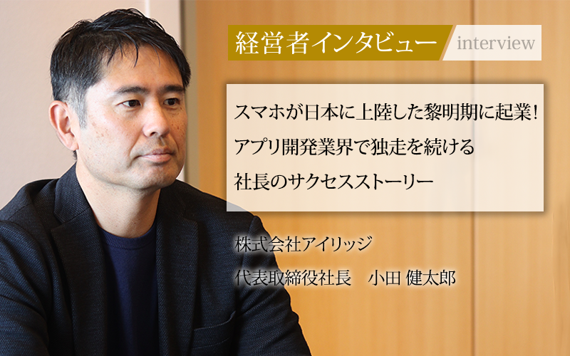 2008年8月に設立された株式会社アイリッジは、スマホアプリを中心としたインターネットサービスの企画・開発や、コンサルティング事業によって成長してきた企業だ。代表取締役社長の小田健太郎氏に、起業のきっかけや成功の裏側をインタビューした。