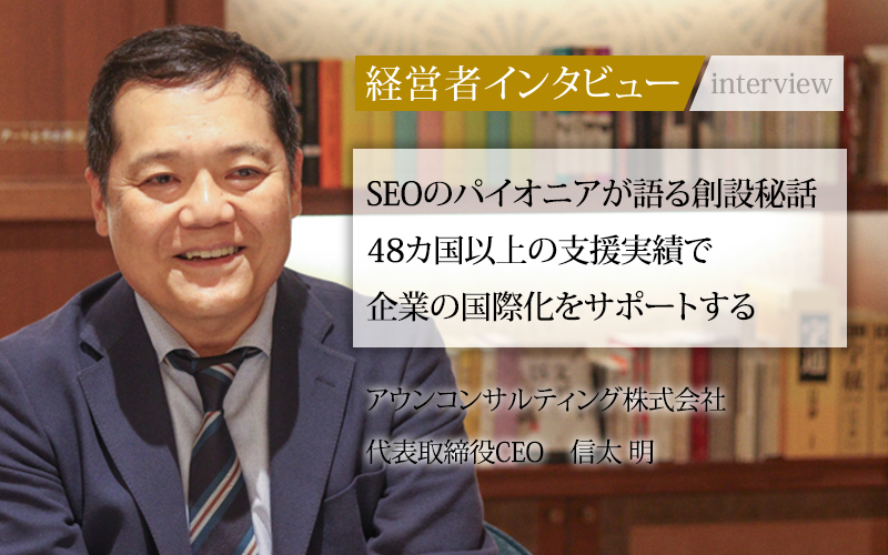 信太明(しだ・あきら)/1968年福島県生まれ。早稲田大学在学中から株式会社リクルートの企画営業に従事。大学卒業とともに株式会社リクルートに入社。その後、株式会社日本ネットワーク研究所(現株式会社ジェーエヌエル)、株式会社ABCマートを経て、1998年6月アウンコンサルティング株式会社を設立。日本でいち早く検索エンジンマーケティング(SEM)に取り組み、事業化。2008年には海外進出を開始。グローバルマーケティングを軸に、現在は市場拡大を目指す企業の国際化支援に注力している。