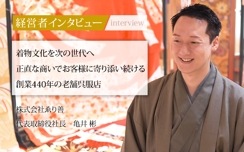 若い世代に少しでも着物に触れてもらう機会を増やせるよう、着物文化を発信し続ける亀井社長の思いを聞いた。