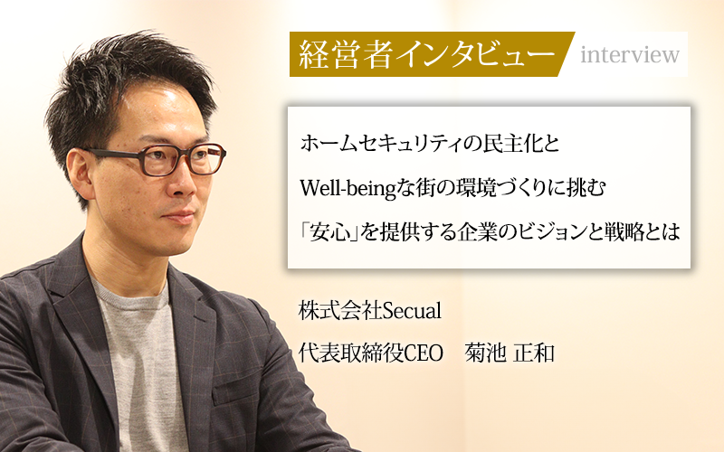 代表取締役CEOの菊池正和氏は、大手通信キャリアで携帯電話の普及と発展に取り組んだ経歴を持つ。菊池氏が株式会社SecualのCEOに至った経緯や事業の強み、事業展開の苦労、そして今後のビジョンや戦略などについてうかがった。