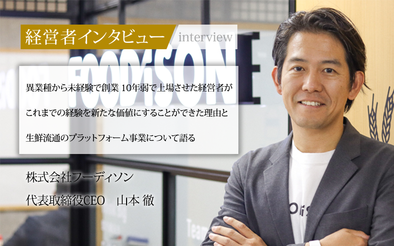山本徹(やまもと・とおる)/北海道大学工学部卒業。2001年4月不動産ディベロッパー入社。2003年4月に株式会社エス・エム・エスへ創業メンバーとして参画し、ゼロからIPO後の成長フェーズまで人材事業のマネジメント、新規事業開発に携わる。2013年4月に株式会社フーディソンを創業し、代表取締役CEOに就任。2022年12月に東京証券取引所グロース市場に上場。