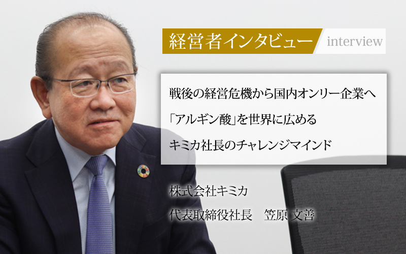 日本で初めて天然多糖類「アルギン酸」の工業化に成功した株式会社キミカ。創業80年を超えた専業メーカーであり、「ベスト・イン・ザ・ワールド」を目指し、そのアピールを世界に向けて行っている。