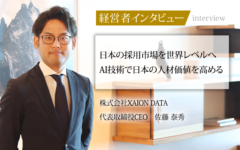 佐藤泰秀(さとう・やすひで)/1993年山形県出身、仙台高等専門学校卒。2014年日立製作所に入社し、公共システム部門において大規模基幹系システムのプロジェクトリーダーとして従事。その後、2018年アメリカ・シリコンバレーのAIスタートアップ企業に入社し、アメリカ市場における事業開発やファイナンス関連の業務に従事。その後日本で子会社設立および、日本支社CEOに就任。2020年1月、XAION DATAを共同創業し、現在は同社CEOを務める。