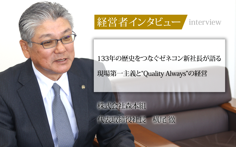 短納期や人手不足から長時間労働が問題視されている建設業だが、森本組の代表取締役社長、横尾徹氏は、この問題の解決に早くから取り組んできた。