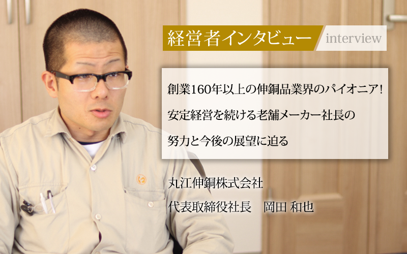 丸江伸銅株式会社は、安政年間の創業から160年以上の歴史をもち、機械の部品などに使われる伸銅品分野のリーディングカンパニーとして製品の開発・生産・販売を一貫して手がけてきた。