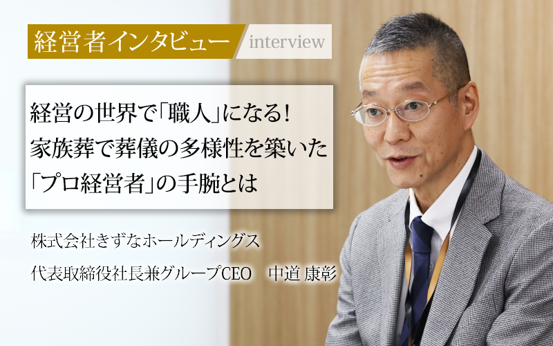 少人数の参列者によるプライベート重視の「家族葬」をパイオニアとして世に広めたほか、遺族の希望に寄り添うオリジナルプランなど、時代に合った家族葬を提供している同社の代表取締役社長兼グループCEOの中道康彰氏に、社長就任の経緯や成長のきっかけを伺った。