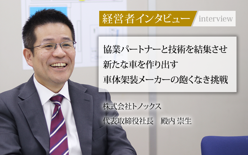 一般車両の製造から特殊車両の製造へ踏み切った経緯や、さまざまな企業と共同開発を進める殿内社長の思いを聞いた。