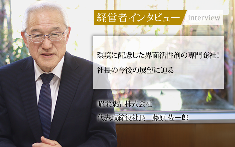 環境を意識した事業活動を行うことを大切にし、化学品だけでなく日用品や土木建設資材など幅広い商品を提供し、昭栄薬品株式会社の強みをつくってきた藤原社長。
