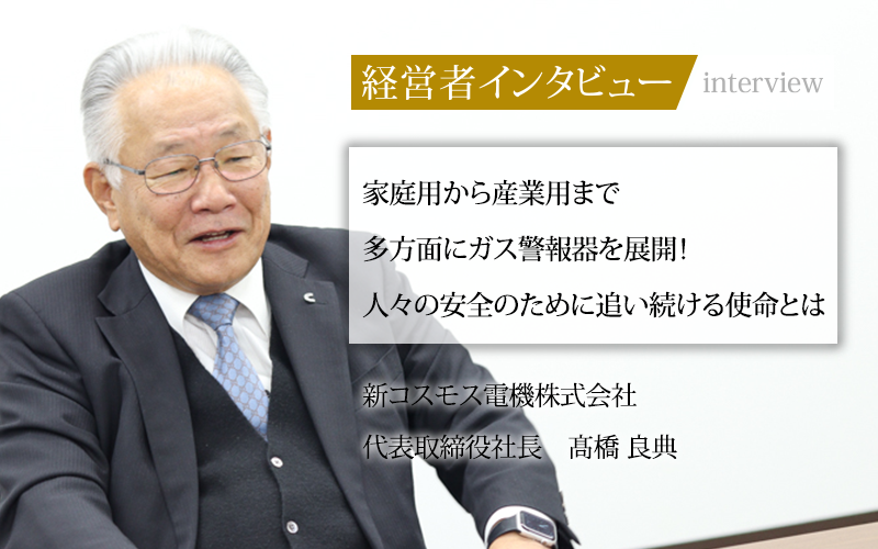髙橋良典(たかはし・よしのり)/1953年岡山県生まれ。岡山理科大学卒。1977年新コスモス電機株式会社に入社し、取締役上席執行役員技術開発本部長や国内営業本部長を歴任後、2017年に代表取締役社長に就任。
