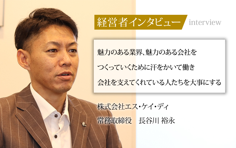 このような状況の中、国交省関係の工事も請け負い65年の実績のある株式会社エス・ケイ・ディは、人が集まる魅力的な建設会社をめざしている。当初は建設業に興味はなかったという長谷川常務の、この会社にかける思いを聞いた。