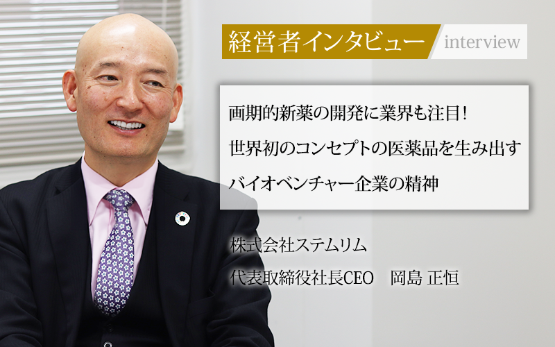 今回は、株式会社ステムリム代表取締役社長CEOの岡島正恒氏から、バイオベンチャー企業に携わることになった経緯、開発している新薬、さらにはベンチャー企業の社員として持つべき大切な考えについてうかがった。