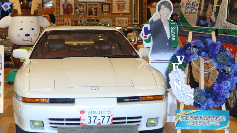特に話題になったのが、高市早苗内閣総理大臣の愛車「スープラ」のレストアです。高市総理が30年ほど大切にされていた「スープラ」が老朽化して困っておられると聞き、弊社で承ることになりました。修復後はミュージアムで展示を行い、全国から大変な反響をいただきました。現在は、高市総理がかつて選挙カーとして使用された「ヴィーナス号」も並べて展示しています。