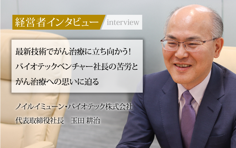 今回は代表取締役社長の玉田耕治氏に、がん免疫療法の研究を始めたきっかけや代表取締役社長に就任するまでの経緯、苦労したエピソード、事業の強みなどについて話をうかがった。