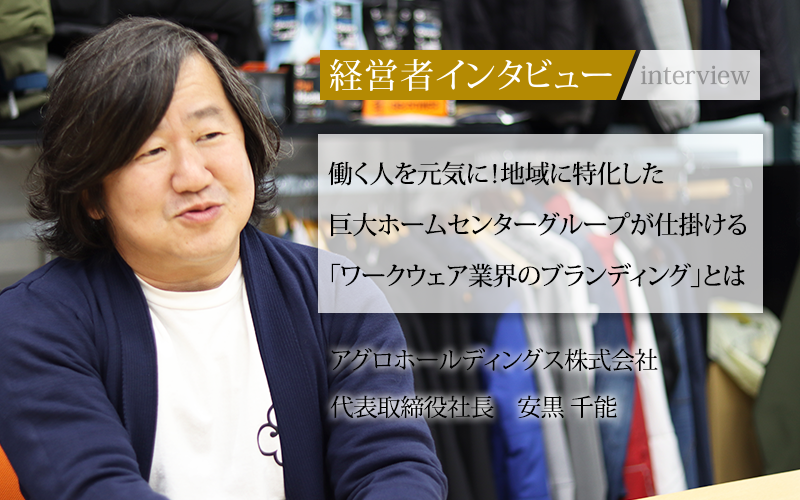 兵庫県を中心にホームセンター業からスタートし、60余年の歴史を持つアグログループ。グループ全体の戦略を決定するべく、2019年にはアグロホールディングス株式会社を設立した。同社の代表取締役社長である安黒千能氏に、設立までの流れや現在注力しているワークウェア事業の手応え、今後の展開についてうかがった。